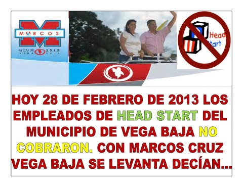 “Yo jamás he solicitado un aumento de sueldo, porque mi compromiso no es con el dinero, sino con mi pueblo”, enfatizó el alcalde de Vega Baja, Marcos Cruz. “Quiero dejarle claro a mi gente de Vega Baja, que estoy consciente de la situación económica por la que atraviesa Puerto Rico, por lo jamás solicitaría un aumento de sueldo”, agregó Cruz.