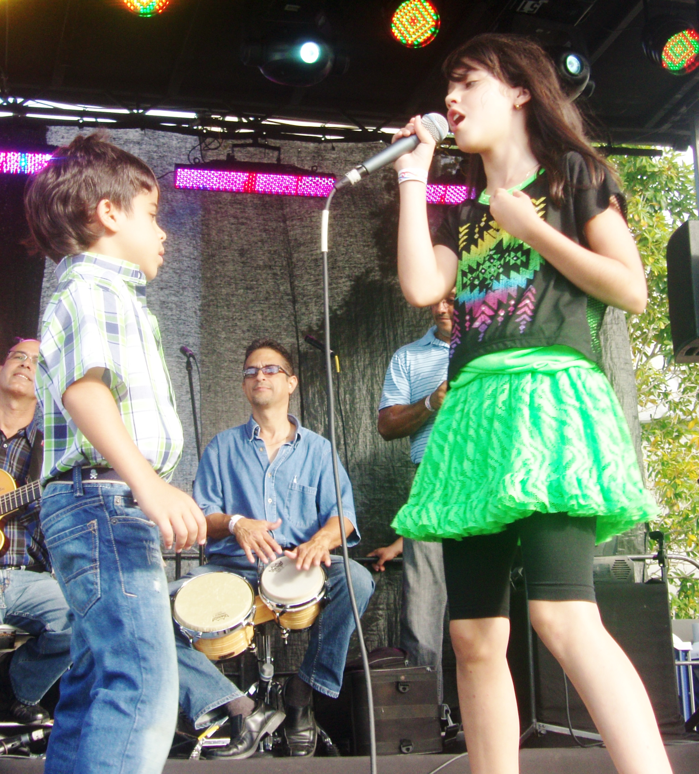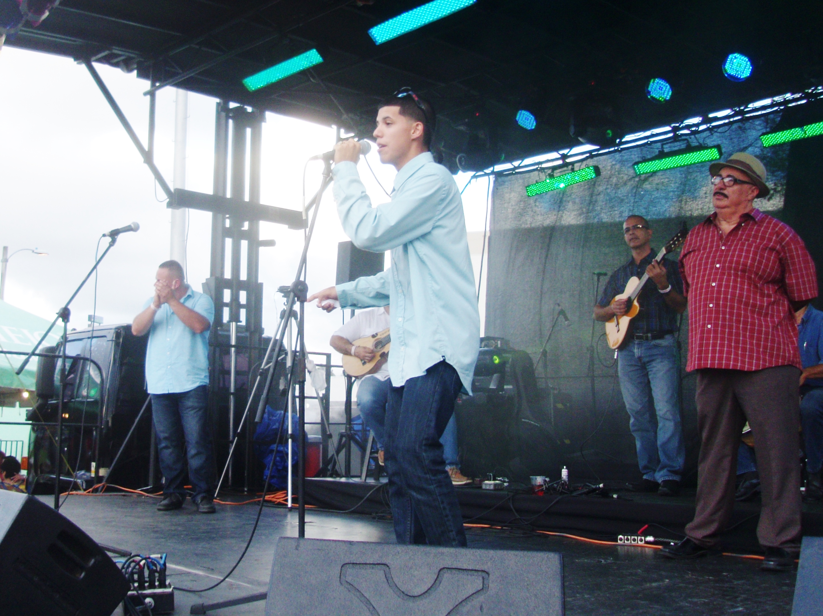 La primera presentación fue del grupo Karas Nuevas, compuesta por naturales de Guaynabo. Su director, Christian Matos , ha trabajado con varias orquestas locales en la faceta de arreglista . Tocaron merengues y bachatas que pusieron a mover a los presentes. Los integrantes fueron bien accesibles y bromearon llamándose a si mismos “La Universidad de la Secuencia”.