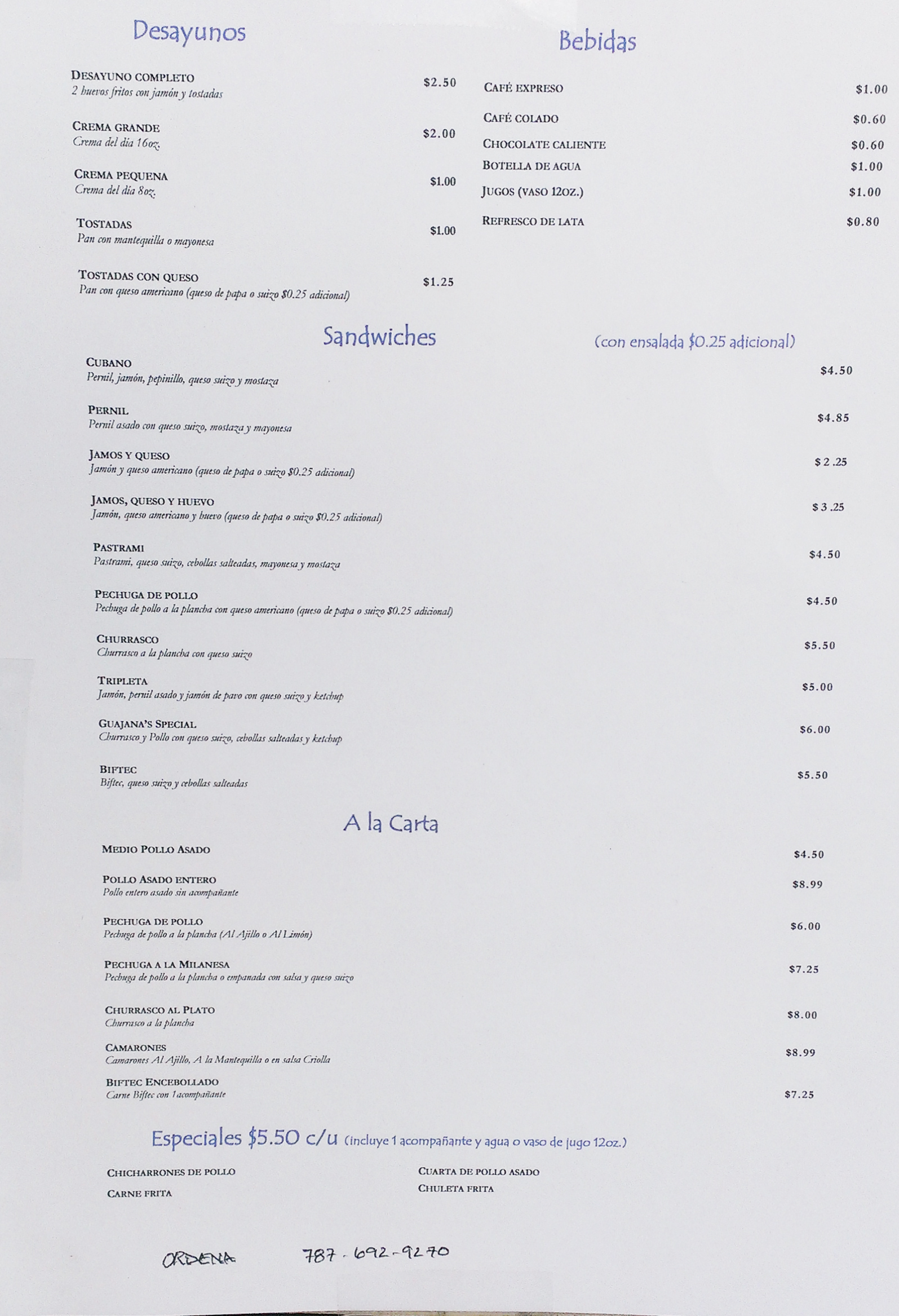 Menú de Guajana’s Cafe