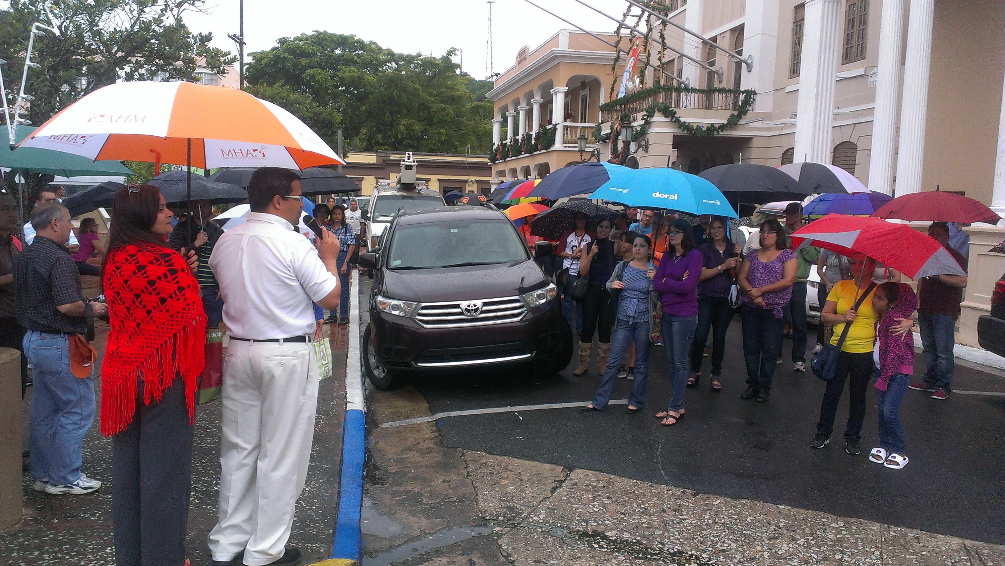 En medio de un fuerte aguacero, el alcalde Marcos Cruz, la Primera Dama Ginny Laureano, funcionarios y empleados públicos caminaron por las calles del casco tradicional llevando una trulla, las batuteras y dulces a los comerciantes y a los visitantes.
