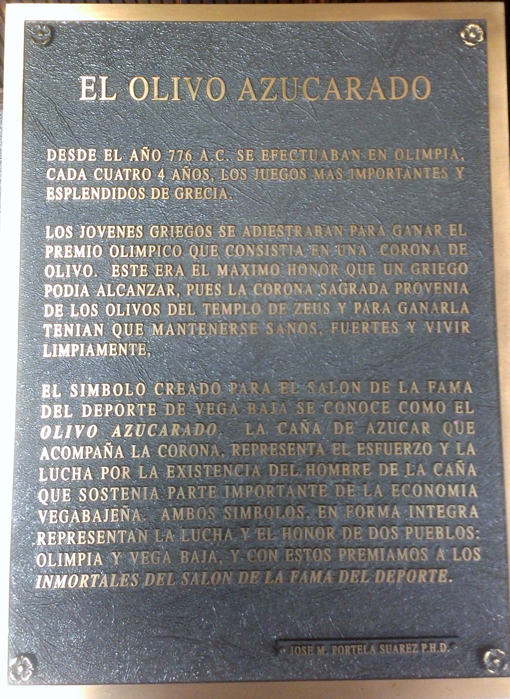 SALON DE LA FAMA DEL DEPORTE TARJAS Y MEMORABILIA olivo azucarado