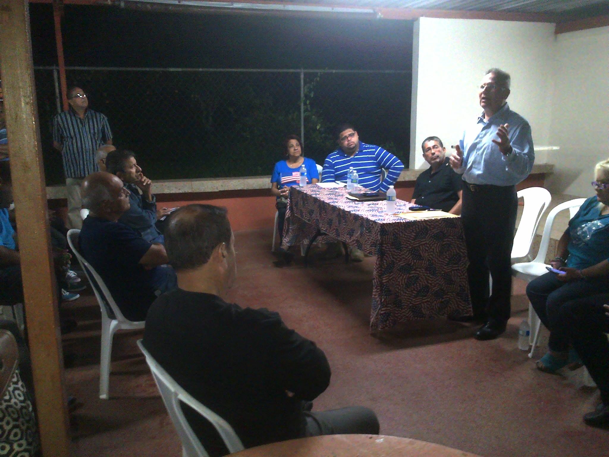El Secretario del Partido Nuevo Progresista, José Aponte, se dirige a los presentes en compañía del Presidente Interino, Hector Owen Gadea y el Vicepresidente José Ayala