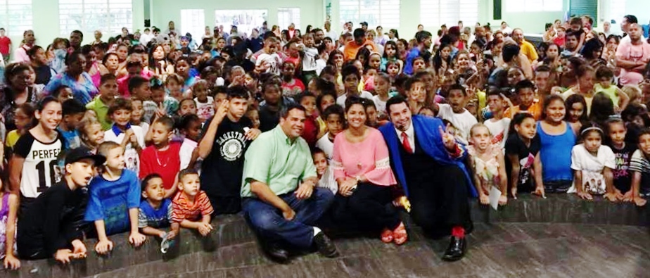ACTIVIDAD DE REYES 2015Acompañados del mago Shabum, la Primera Dama, Ginny Laureano y el Alcalde de Vega Baja, Marcos Cruz, comparten alegres esta foto en Tortuguero, donde se celebró la tradicional actividad de los Reyes Magos. Hubo regalos y la presencia de un circo, un camello, la Orquesta de Muñecos, personajes de tirillas y películas y casas de brinco.