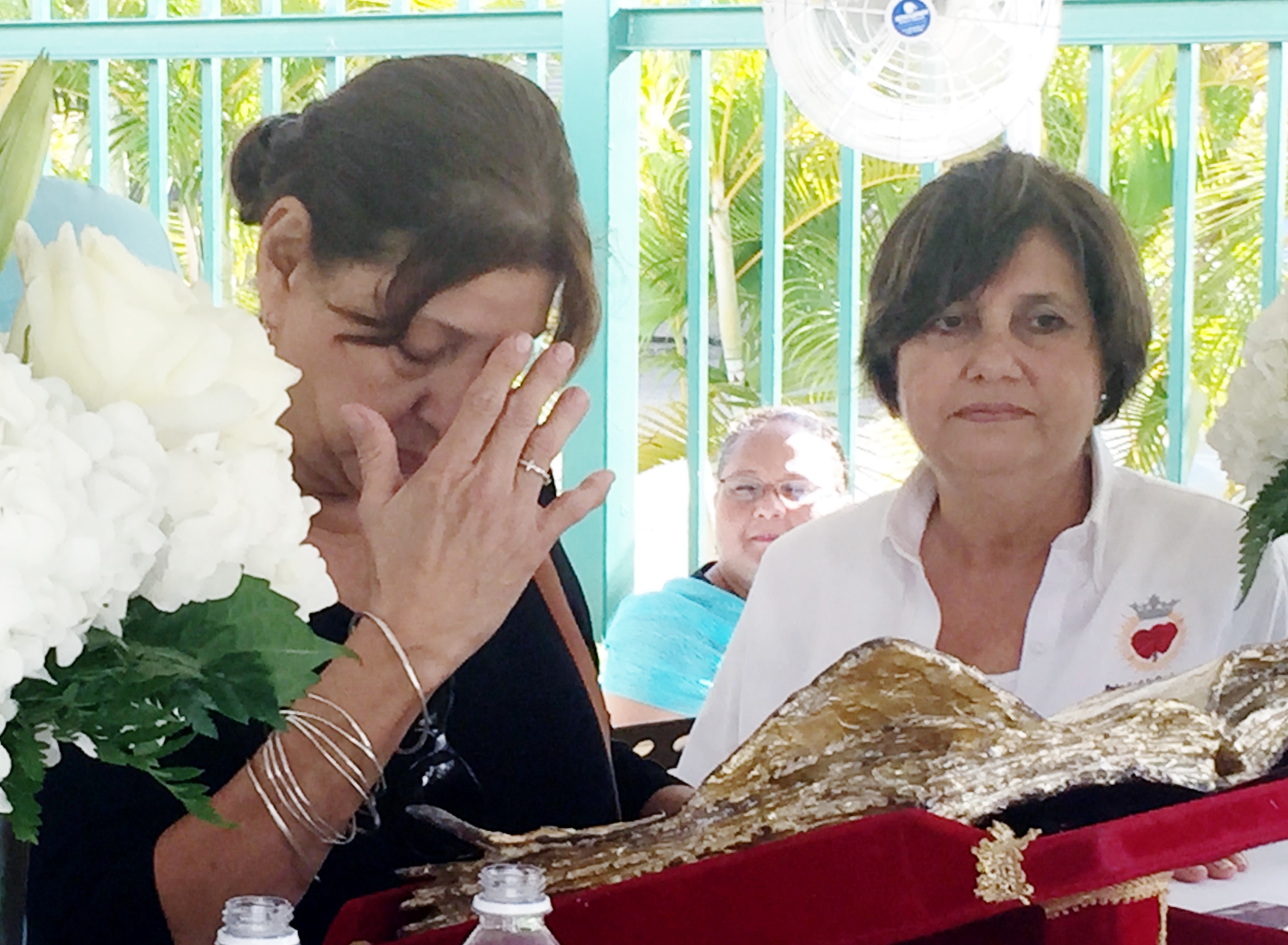 Julia (Yuya) Narváez es una de las primeras vegabajeñas en tener la experiencia de pasar hoy frente a la reliquia de sangre de San Juan Pablo II en Plaza Las Américas (Foto Alex Caro/Carola Narváez Rosario)
