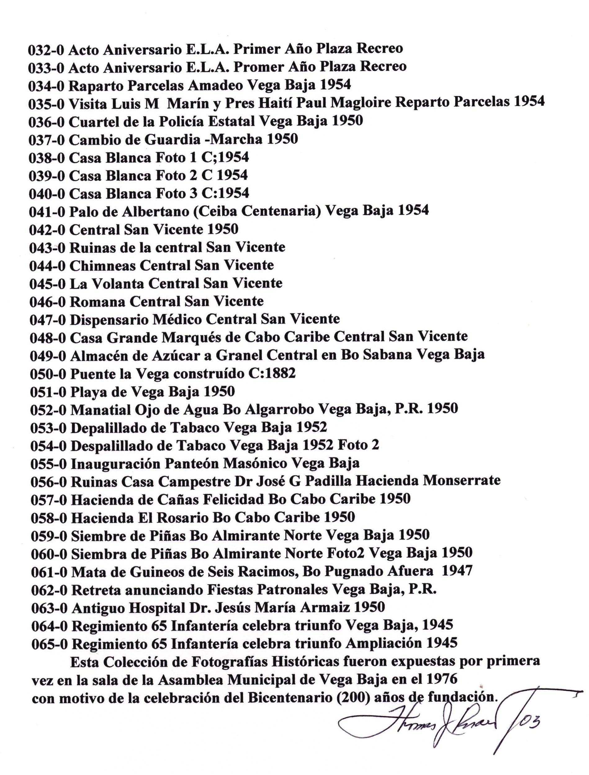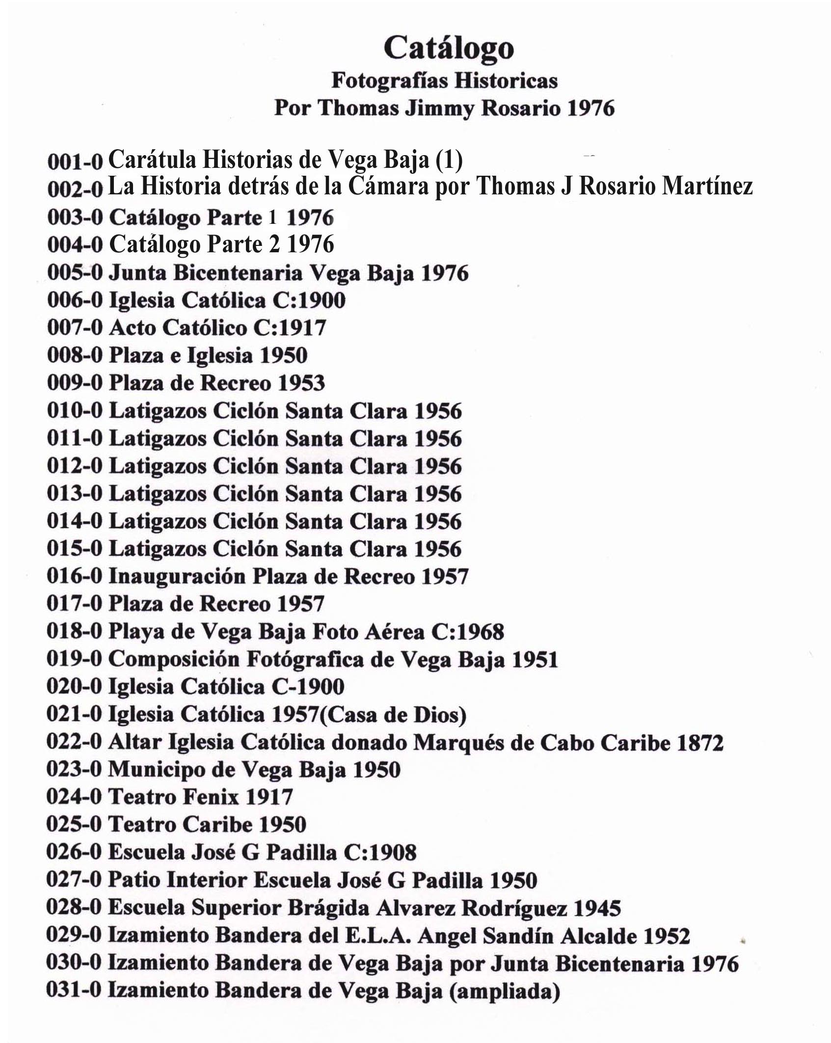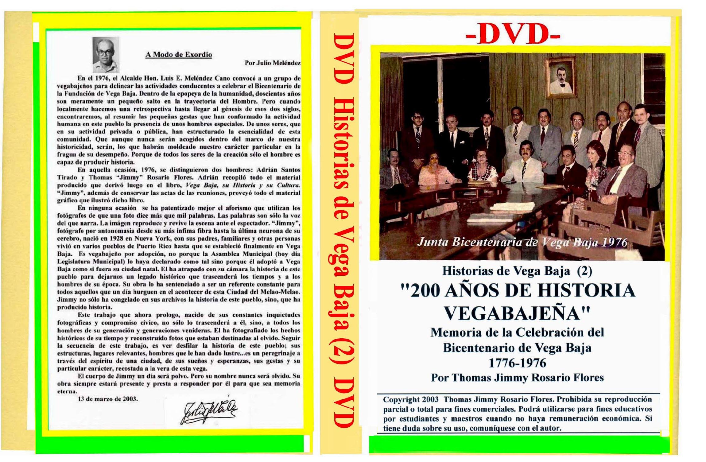 200 Años de Historia Vegabajeña. Nombre de trabajo de recopilación histórica preparado en 2003 por Thomas (Jimmy) Rosario Flores sobre la celebración del Bicentenario de Vega Baja en 1976. El prólogo fue escrito por el profesor vegabajeño Julio Meléndez e incluye fotografías reproducidas o tomadas por el autor con comentarios o anotaciones. Es el único trabajo histórico que se ha hecho para conmemorar los doscientos años de fundación de Vega Baja. Tiene 153 imágenes.