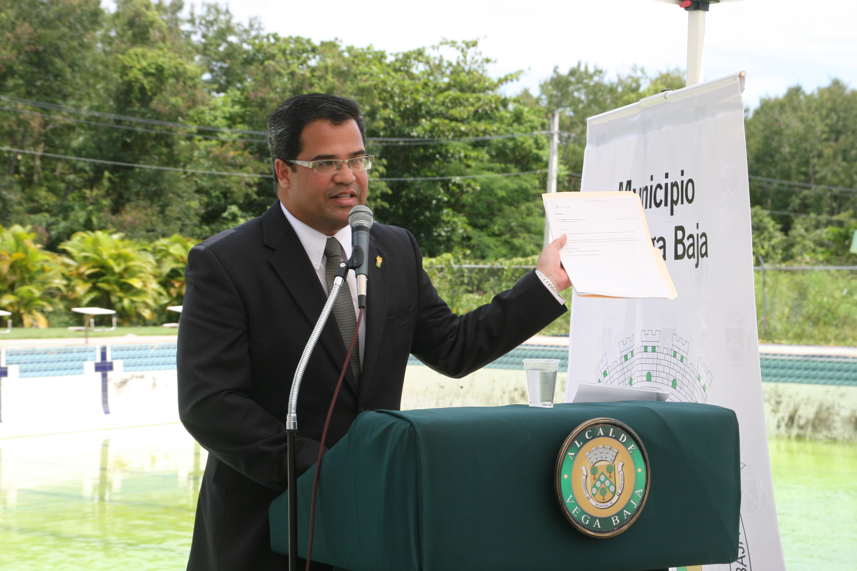 “Llevamos 3 meses con el nuevo presupuesto 2013 – 2014 y ya estamos realizando los trámites correspondientes para reparar por completo esta facilidad. Actualmente se está vaciando la piscina para comenzar con los trabajos de reparación, que consiste en marmolizar, comprar el sistema de bombeo, repararla por completo y entregarla en excelentes condiciones, para ofrecer los servicios. Confiamos que en los próximos meses terminaremos con las reparaciones para su funcionamiento al 100%”